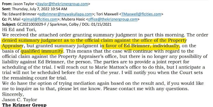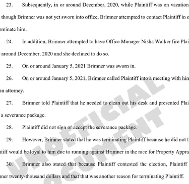 The woes of the Property Appraiser’s Office did not end there. In 2021 Sparkman filed an employment lawsuit against the Property Appraiser’s Office.