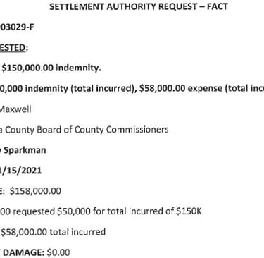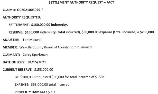The settlement for the Sparkman case came in at $150,000.00 outlined as follows: