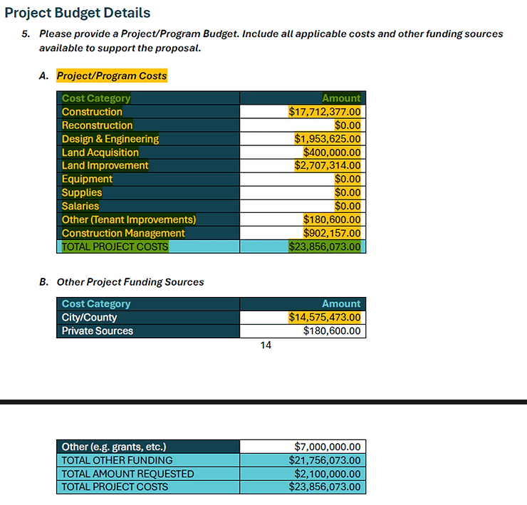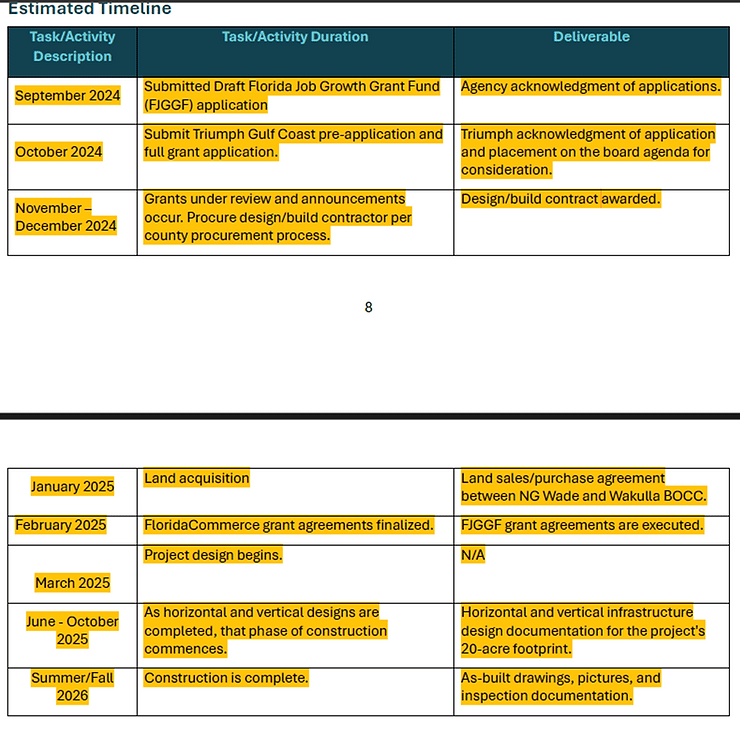In August the county administration's persuasion was that this was in the wee beginning stages and nothing was being built or solidified yet. This recent application timeline says otherwise. Within 75 days, a contract for construction is projected to be executed. Land purchase by January 2025. We won't even know the status of one of the grants until February 2025.