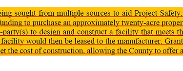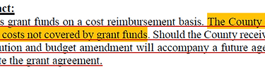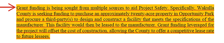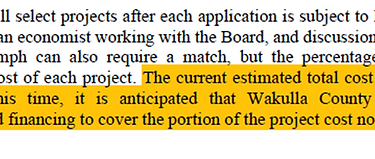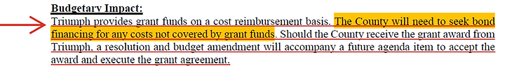 In previous board meetings it was communicated that the county would need to seek financing to build the structures but then would recoup the money through grants (this seemingly said, "we will spend but we will get it all back"). This also appears to have been put to the wayside. This is from the agenda item document. .