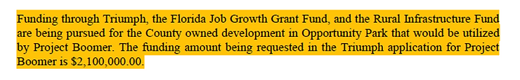 This is the grant application excerpt from the agenda for Project Boomer. A smaller project but the taxpayers will also be on the hook for a portion of this.