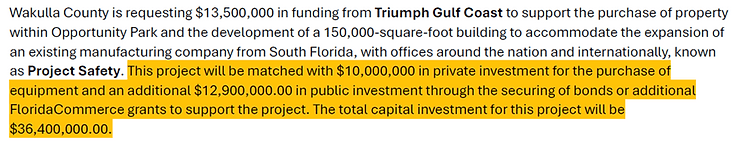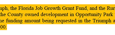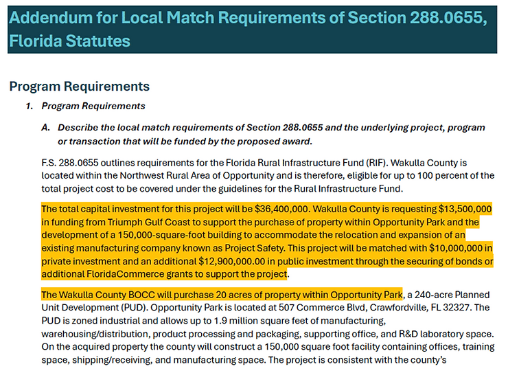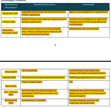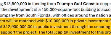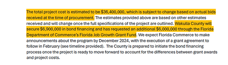The below excerpt from the Triumph Gulf Coast Application shows that the Florida Commerce Grant Program has not even commenced yet and will not until December of 2024. Therefore, the taxpayers should expect to be on the hook for $12,900,000.00 and, I guess, rejoice if this Grant program comes through and we are accepted?