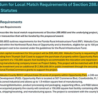 In August of 2024 the Wakulla County Administrator and the EDC (Economic Development Council) pitched the construction of two 100,000(+) square foot buildings built to suit in order to attract one out of town business to Wakulla County and to grow one local business. Wakulla Reports found this interesting since our infrastructure is currently lacking and has been for some time while single family home building has not slowed.