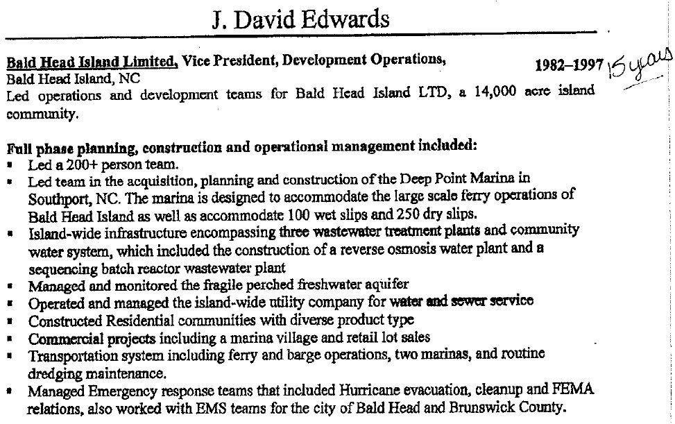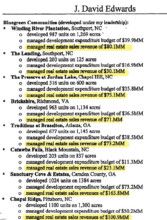 After his seemingly successful tenure at Bald Head Limited in North Carolina, he began employment at Bluegreen Communities in Atlanta, GA, where he served as Vice President of Development Operations. His resume touts that he generated millions in revenue through various development activities and even lists them, and the dollar amounts! Later, in the same year he began employment with Wakulla County BOCC, a RICO case was filed against Bluegreen Communities, with Edwards specifically named in the lawsuit. However, this lawsuit, which initially may have had the potential to evolve into a class action (see associated documents), was eventually abruptly voluntarily dismissed, raising questions about the circumstances surrounding its abandonment.