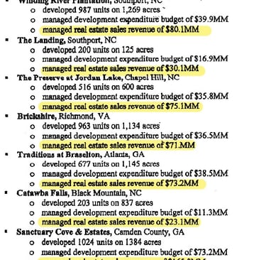 Seasoned developer with knowledge of planning, permitting, investor fund building, sales, revenue and all things real estate development.