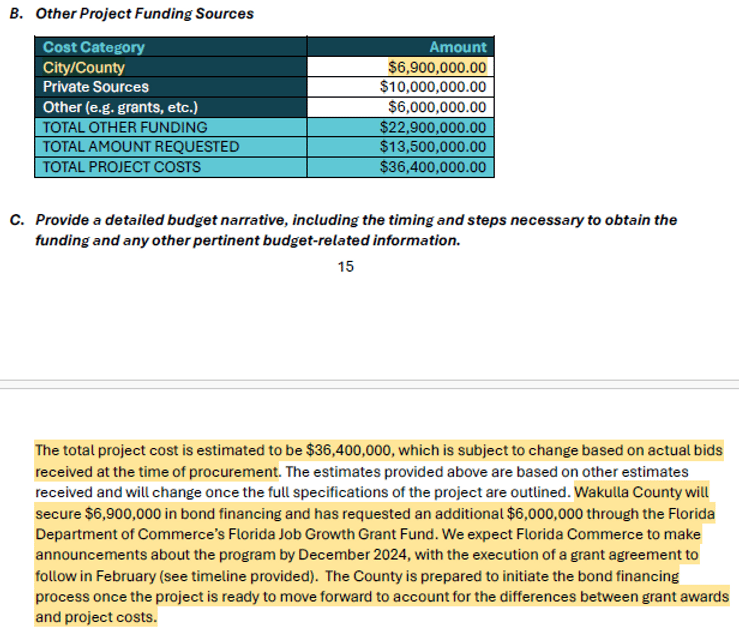 What is going on? How can this project be a priority when we have one of the lowest unemployment rates in the State of Florida but our infrastructure and other needs (animal shelter) are suffering? Also, do we believe that nobody from Leon County will take any of the jobs created? How many people live in Leon County and work at Wakulla CI, which will be a neighbor to these facilities? Should Wakulla County citizens be on the hook to subsidize private businesses that may or may not benefit the county, while going further in debt? Many questions to ponder.