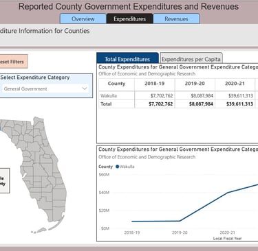 Wakulla County is one of only five Florida counties where general government spending exceeds law enforcement spending. Even more striking, we're the number one outlier statewide, with general government accounting for more than 35% of our total expenditures.
