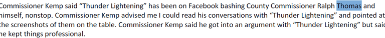 Ralph Thomas was never interviewed but his name was mentioned in the 89-page report 127 times. A few clips from the areas where he was mentioned (in no particular order - yellow redactions indicate Thunder Lightening's true name redaction):